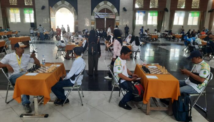TASIKMALAYA — Persatuan Catur Seluruh Indonesia (Percasi) Kabupaten Tasikmalaya menggelar Babak Kualifikasi (BK) Catur menuju Pekan Olahraga Provinsi (Porprov) Jawa Barat 2026 di Gedung Islamic Center Singaparna, (2/11/2025).