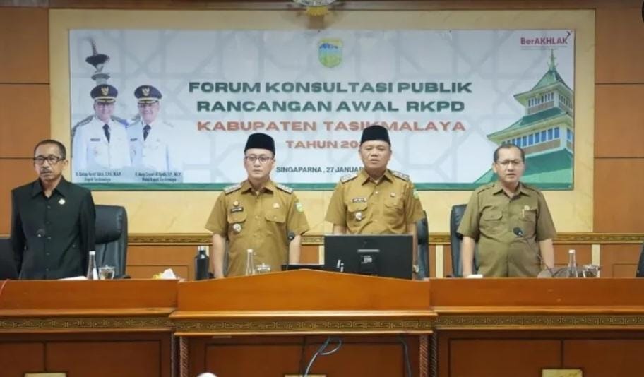 TASIKMALAYA – Bupati dan Wakil Bupati Tasikmalaya menghadiri Forum Konsultasi Publik Rancangan Awal (Ranwal) Rencana Kerja Pemerintah Daerah (RKPD) Kabupaten Tasikmalaya Tahun 2027. Kegiatan tersebut digelar di Aula Wiradadaha Bappelitbangda Kabupaten Tasikmalaya, (27/1/2026).