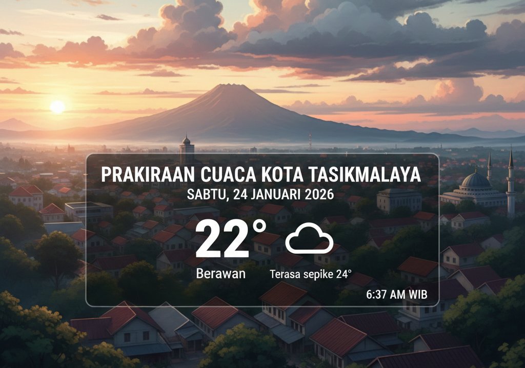 TASIKMALAYA – Mengawali akhir pekan di Kota Resik, warga Kota Tasikmalaya disambut dengan udara yang cukup sejuk dan langit yang diselimuti awan. Berdasarkan pantauan cuaca terbaru pada Sabtu pagi, 24 Januari 2026, suhu menyentuh angka 22°C namun dengan sensasi udara (feels like) sekitar 24°C.