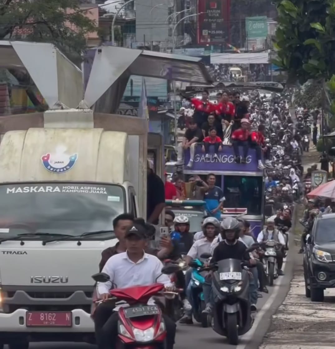 TASIKMALAYA – Senin pagi, 3 November 2025, Jalan Raya Karangnunggal tak seperti biasanya. Jalur utama yang biasanya hanya dilintasi kendaraan niaga dan motor warga kini berubah menjadi lautan manusia. Ribuan warga berjejal di pinggir jalan, sebagian berdiri di bawah terik matahari, sebagian lagi memanjat pagar dan atap toko, menunggu satu momen bersejarah kepulangan tim futsal SMKN Bantarkalong, juara nasional Grand National Championship (GNC) Futsal Series 2025.