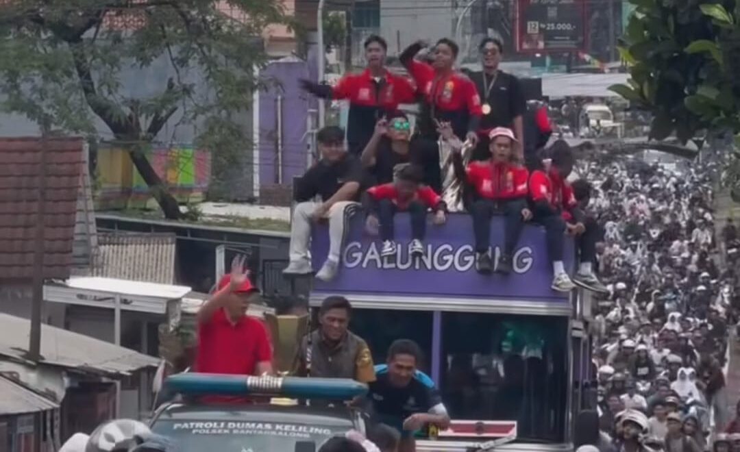 TASIKMALAYA – Senin pagi, 3 November 2025, Jalan Raya Karangnunggal tak seperti biasanya. Jalur utama yang biasanya hanya dilintasi kendaraan niaga dan motor warga kini berubah menjadi lautan manusia. Ribuan warga berjejal di pinggir jalan, sebagian berdiri di bawah terik matahari, sebagian lagi memanjat pagar dan atap toko, menunggu satu momen bersejarah kepulangan tim futsal SMKN Bantarkalong, juara nasional Grand National Championship (GNC) Futsal Series 2025.