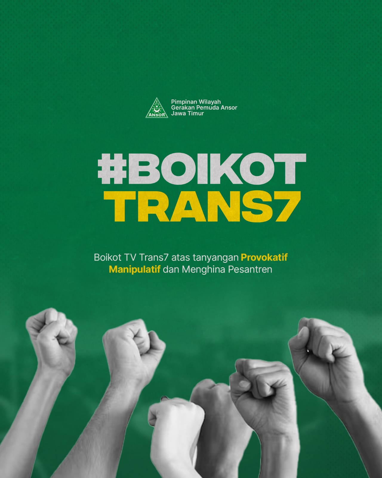 “Ironis, media sebesar Trans 7 justru menayangkan hal yang menyakiti hati para santri. Kami mengecam keras tayangan itu dan menuntut CEO Transmedia untuk meminta maaf secara terbuka serta sowan ke Pondok Pesantren Lirboyo,” tegasnya.