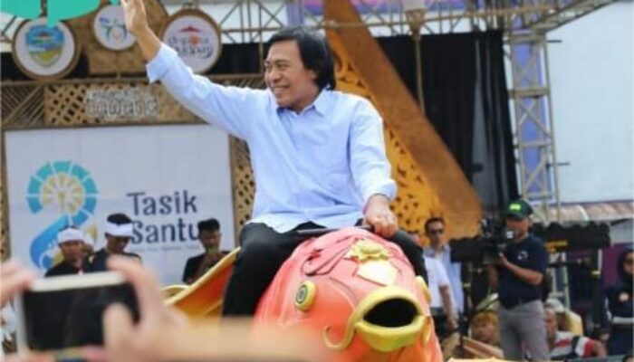 Suasana semakin pecah saat Komeng bersama Wali Kota Tasikmalaya Viman Alfarizi Ramadhan menaiki tandu berbentuk ikan legendaris Si Layung dan Si Kohkol menuju panggung utama. Tawa dan sorak riuh penonton pun pecah, menandai momen penuh keceriaan di pagi yang cerah itu.