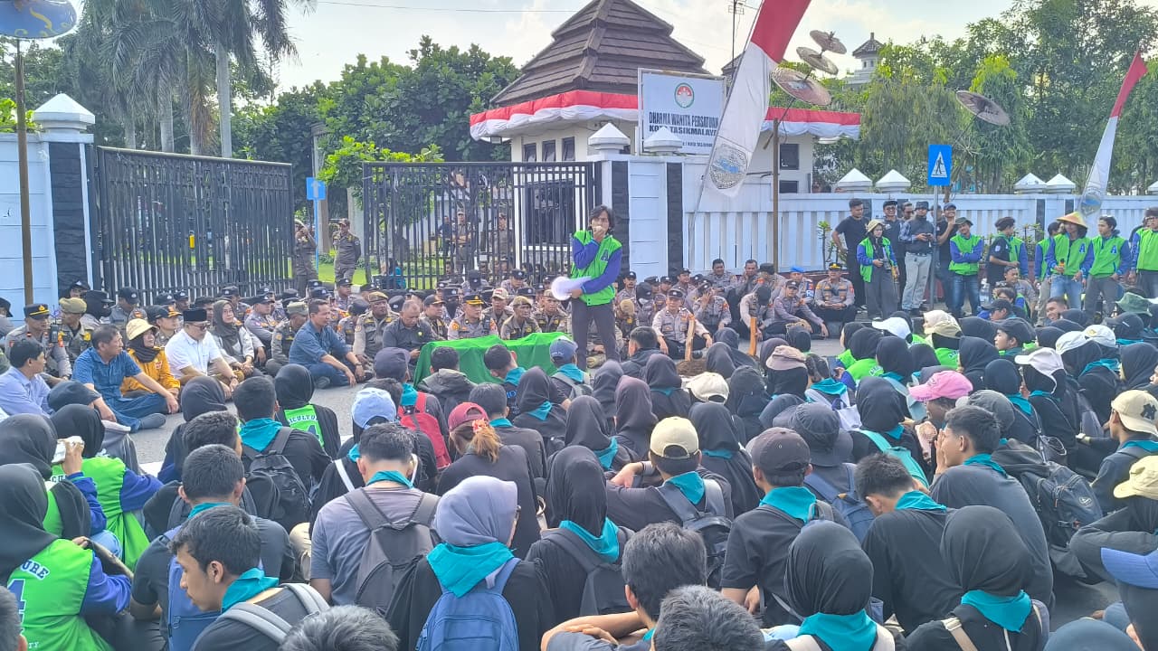 TASIKMALAYA – Ratusan mahasiswa yang tergabung dalam Badan Eksekutif Mahasiswa (BEM) Fakultas Pertanian Universitas Siliwangi (Unsil) Tasikmalaya menggelar aksi demonstrasi di depan gerbang pintu masuk Bale Kota Tasikmalaya, Selasa (23/9/2025). Aksi tersebut digelar dalam rangka memperingati Hari Tani Nasional yang jatuh pada 24 September 2025.