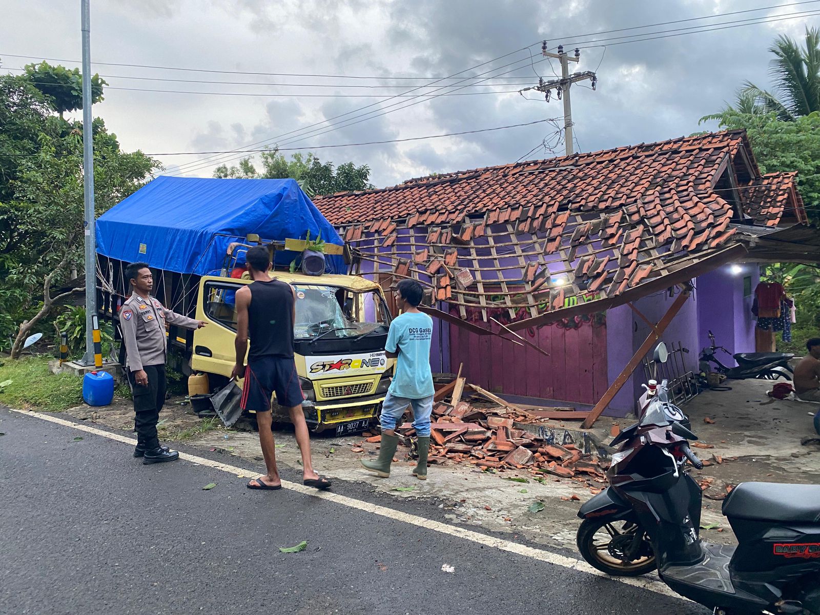 Sementara itu, rumah korban mengalami kerusakan cukup parah pada bagian depan akibat benturan keras dari kendaraan bermuatan tersebut.