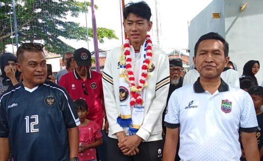 TASIKMALAYA – Atlet voli timnas Indonesia U-18, Farrel Dwika Alessi, disambut meriah oleh warga saat tiba di kampung halamannya, Alun-Alun Cisaga, (12/11/2025). Kehadirannya menjadi momen penuh kebanggaan bagi masyarakat Kecamatan Cisaga, Kabupaten Ciamis.