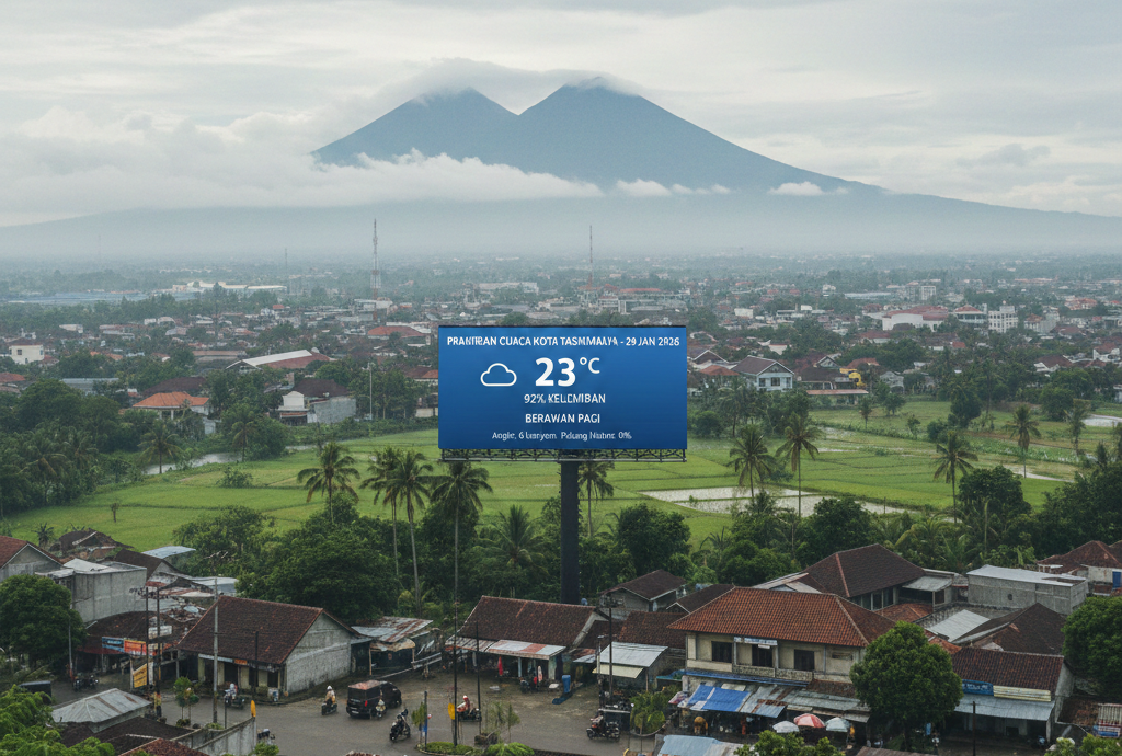 TASIKMALAYA – Kondisi cuaca di Kota Tasikmalaya pada Kamis, 29 Januari 2026 diperkirakan berawan sejak pagi hari. Berdasarkan prakiraan cuaca terbaru, suhu udara berada di kisaran 23 derajat Celsius, dengan tingkat kelembapan yang cukup tinggi.