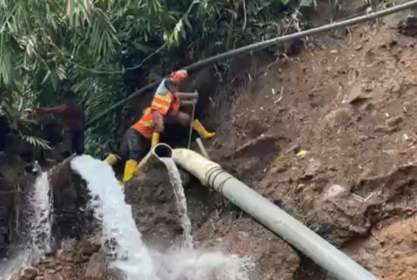 “Satu pipa berhasil disambung kembali, sementara satu pipa lainnya masih dalam proses perbaikan. Upaya penyambungan tidak mudah karena potensi longsor susulan masih tinggi dan hujan deras terus turun,” katanya.