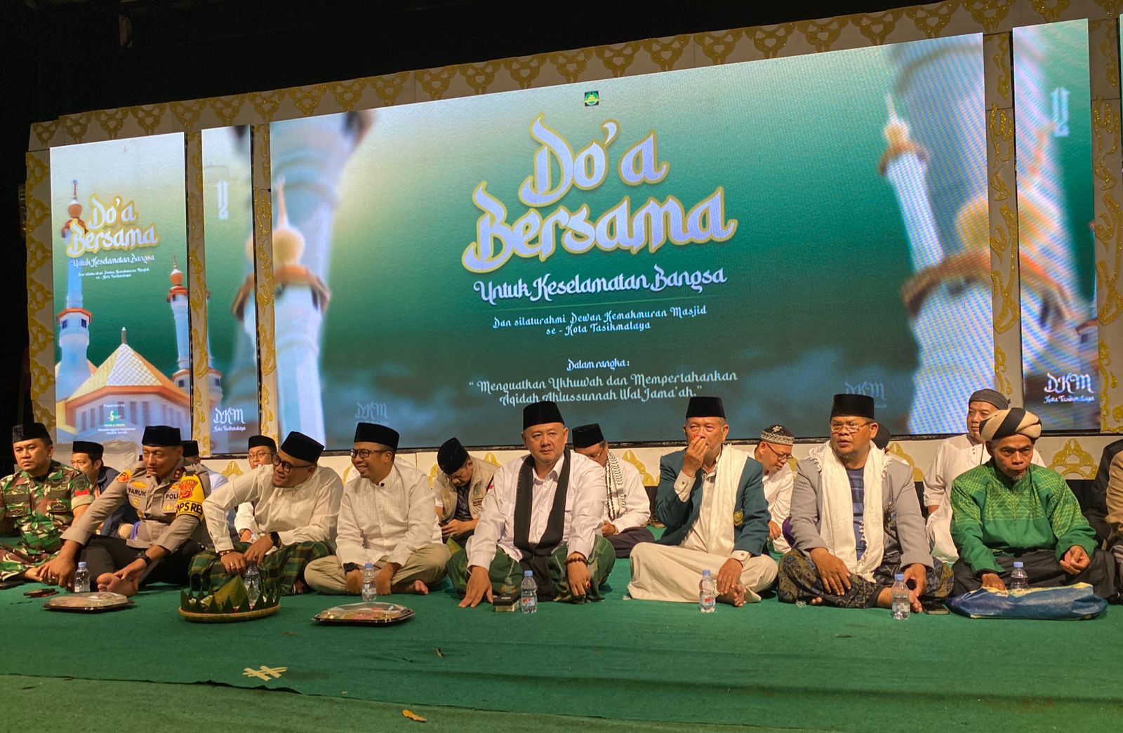 TASIKMALAYA – Dewan Kemakmuran Masjid (DKM) se-Kota Tasikmalaya bersama para santri menggelar doa bersama untuk keselamatan bangsa di Taman Kota Tasikmalaya, Minggu malam (28/12/2025). Kegiatan ini menjadi bagian dari refleksi akhir tahun 2025 sekaligus upaya memperkuat ukhuwah Islamiyah.