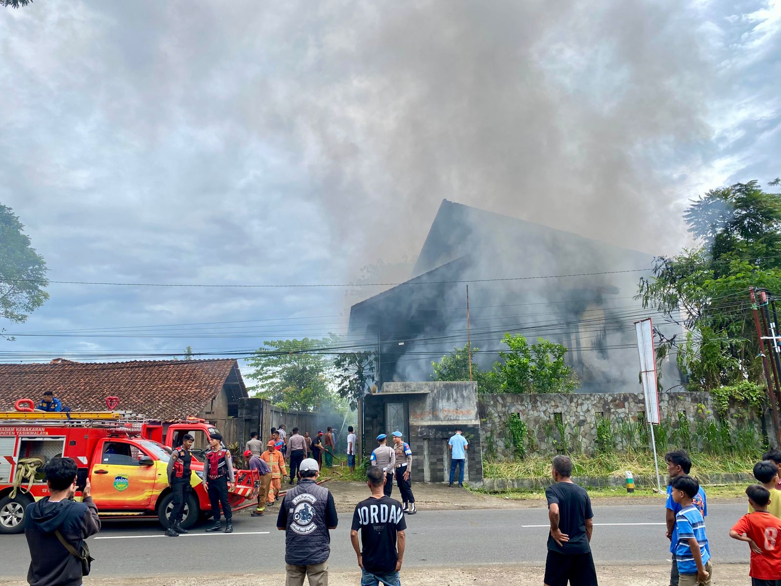 Tim pemadam kebakaran bergerak cepat menurunkan lima unit mobil Damkar untuk menjinakkan api yang terus membesar. Bantuan tambahan juga datang dari kendaraan tangki FK Tagana serta satu unit water canon Polres Tasikmalaya.