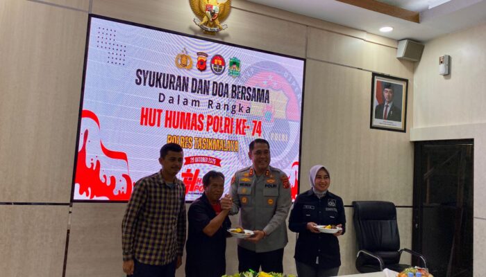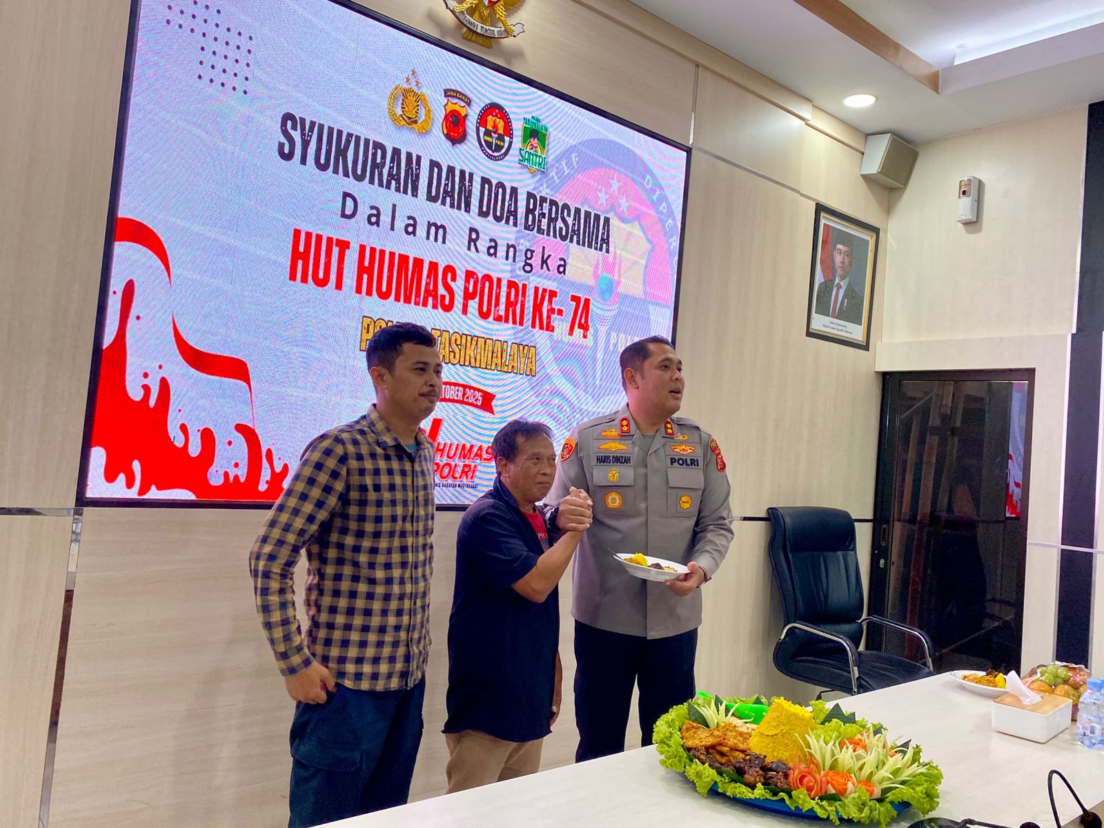 TASIKMALAYA – Dalam suasana hangat dan penuh keakraban, Polres Tasikmalaya menggelar acara syukuran untuk memperingati Hari Ulang Tahun (HUT) ke-74 Humas Polri. Kegiatan ini menjadi ajang mempererat sinergi antara jajaran kepolisian dengan rekan-rekan media yang tergabung dalam Kelompok Kerja (Pokja) Polres Tasikmalaya.