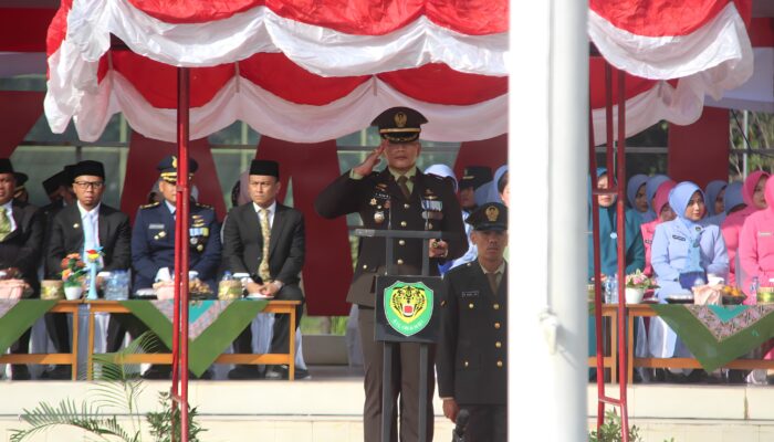 Sekitar enam ratus peserta hadir dari berbagai unsur, mulai dari TNI, Polri, ASN, pelajar, hingga organisasi masyarakat. Suasana upacara berlangsung tertib dan penuh semangat kebangsaan.